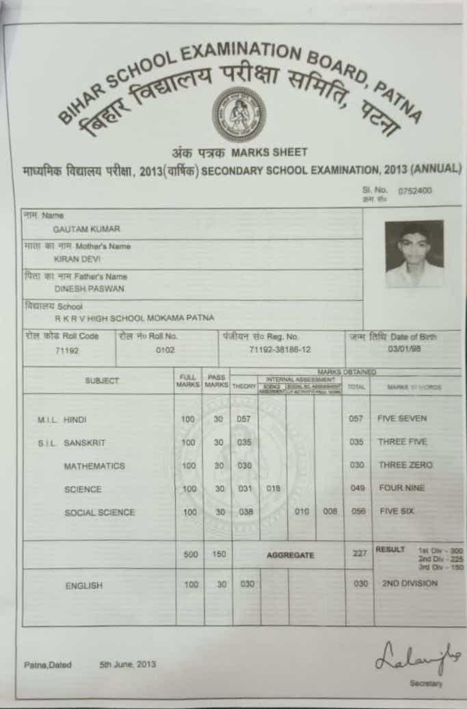 | Exam | Full Marks | Pass Marks | Marks Obtained |