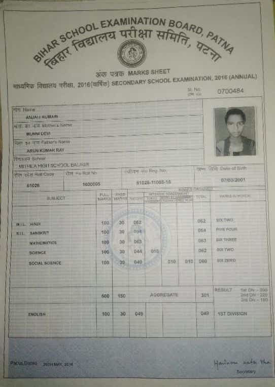 | Exam | Full Marks | Pass Marks | Marks Obtained |
