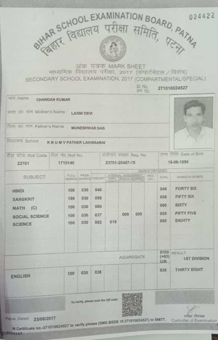 | Exam | Full Marks | Pass Marks | Marks Obtained |