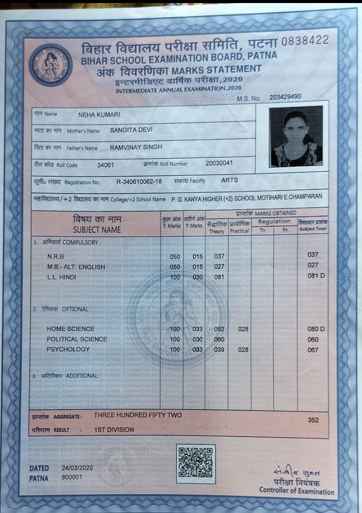 | Exam | Full Marks | Pass Marks | Marks Obtained |