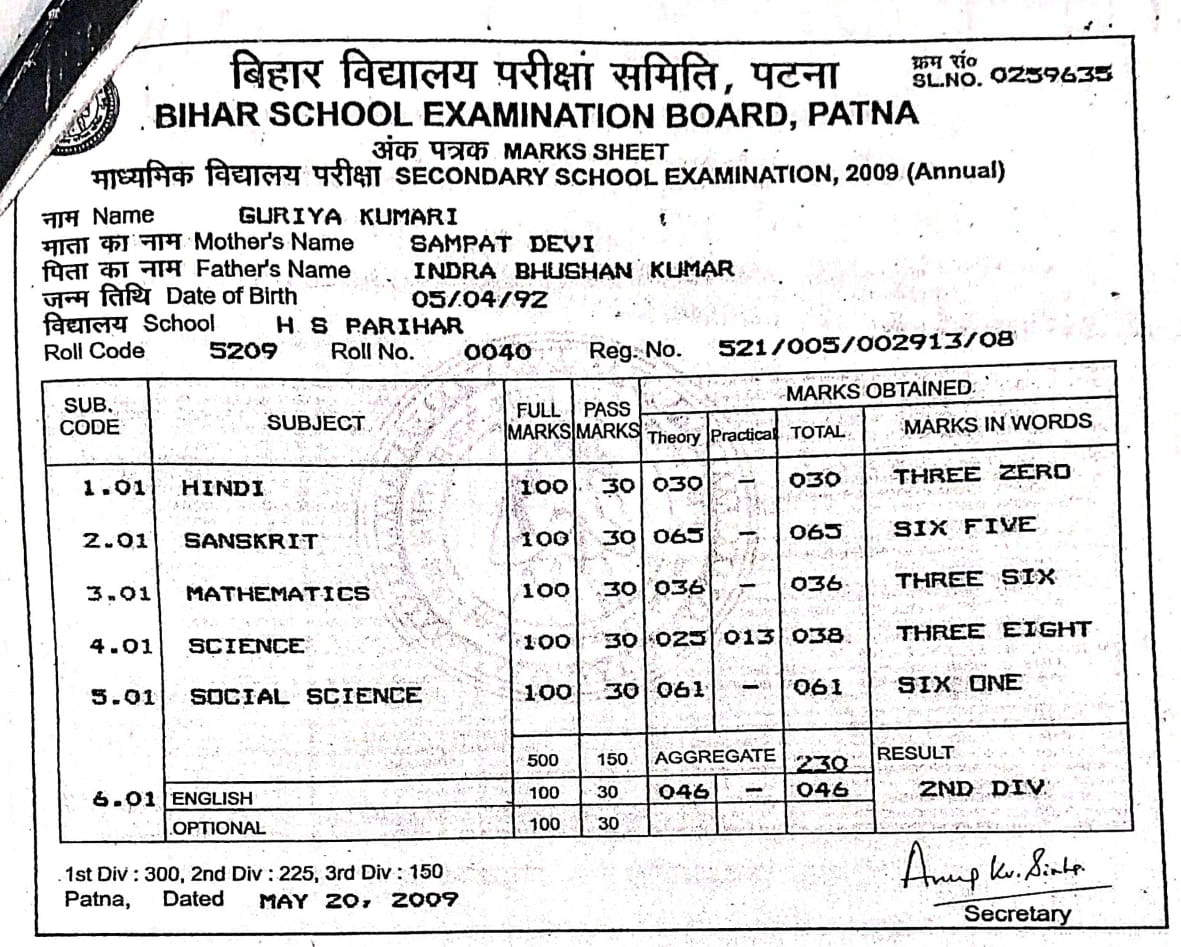 | Exam | Full Marks | Pass Marks | Marks Obtained |