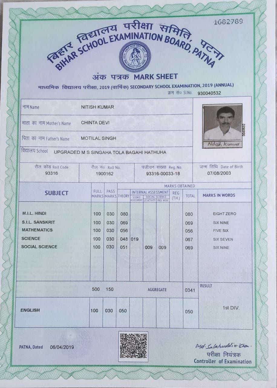 | Exam | Full Marks | Pass Marks | Marks Obtained |