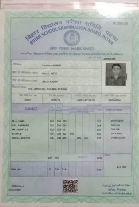 | Exam | Full Marks | Pass Marks | Marks Obtained |