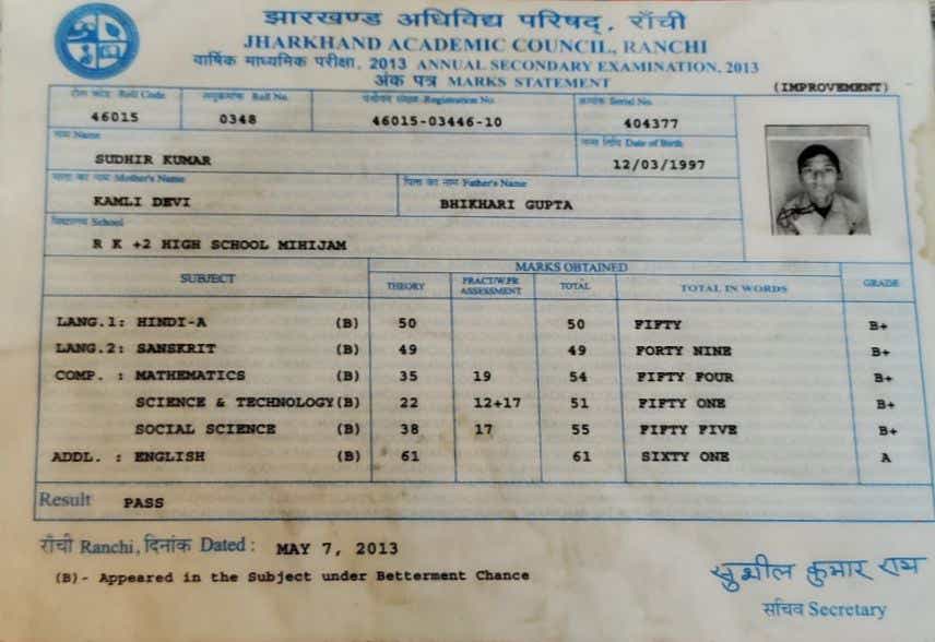 | Exam | Full Marks | Pass Marks | Marks Obtained |