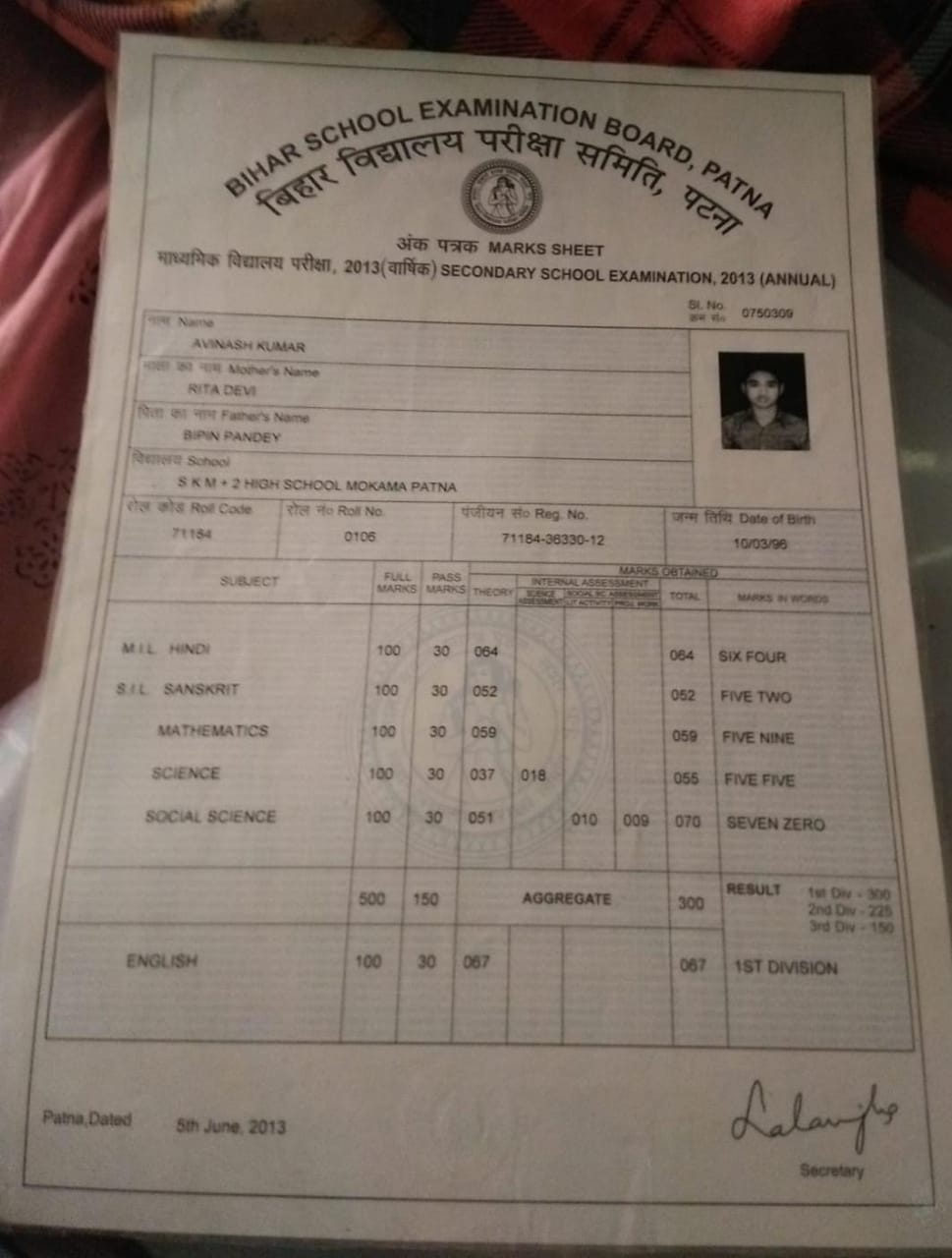 | Exam | Full Marks | Pass Marks | Marks Obtained |