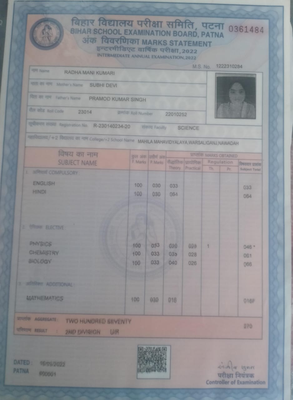 | Exam | Full Marks | Pass Marks | Marks Obtained |