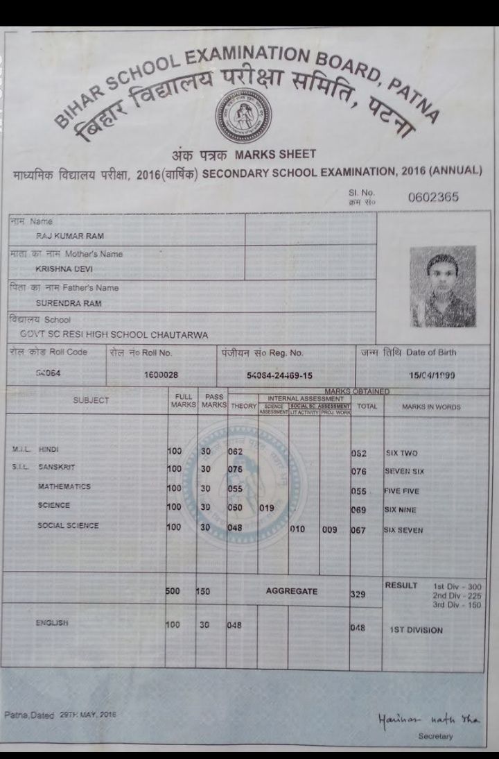 | Exam | Full Marks | Pass Marks | Marks Obtained |