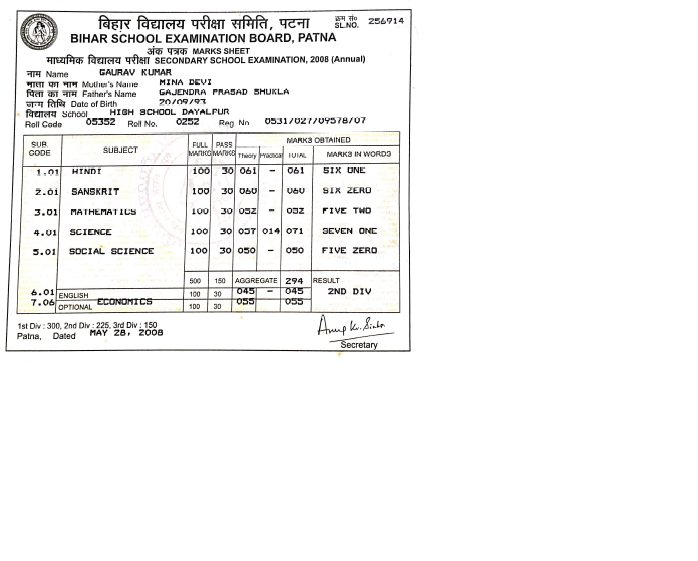 | Exam | Full Marks | Pass Marks | Marks Obtained |