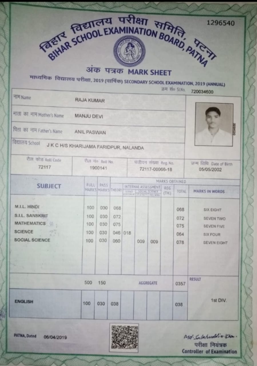 | Exam | Full Marks | Pass Marks | Marks Obtained |