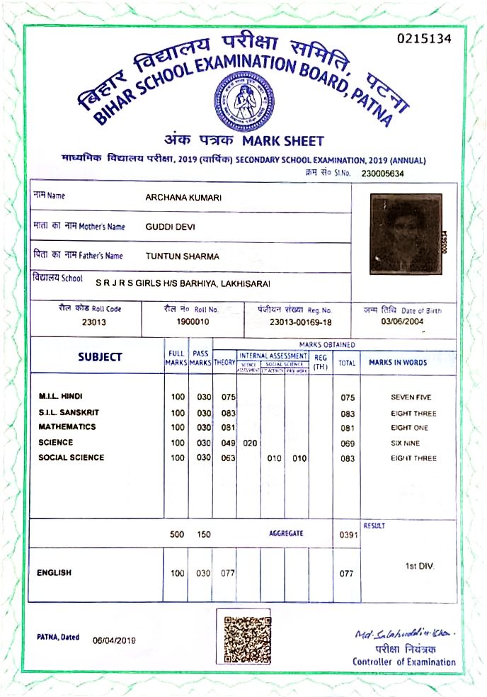 | Exam | Full Marks | Pass Marks | Marks Obtained |