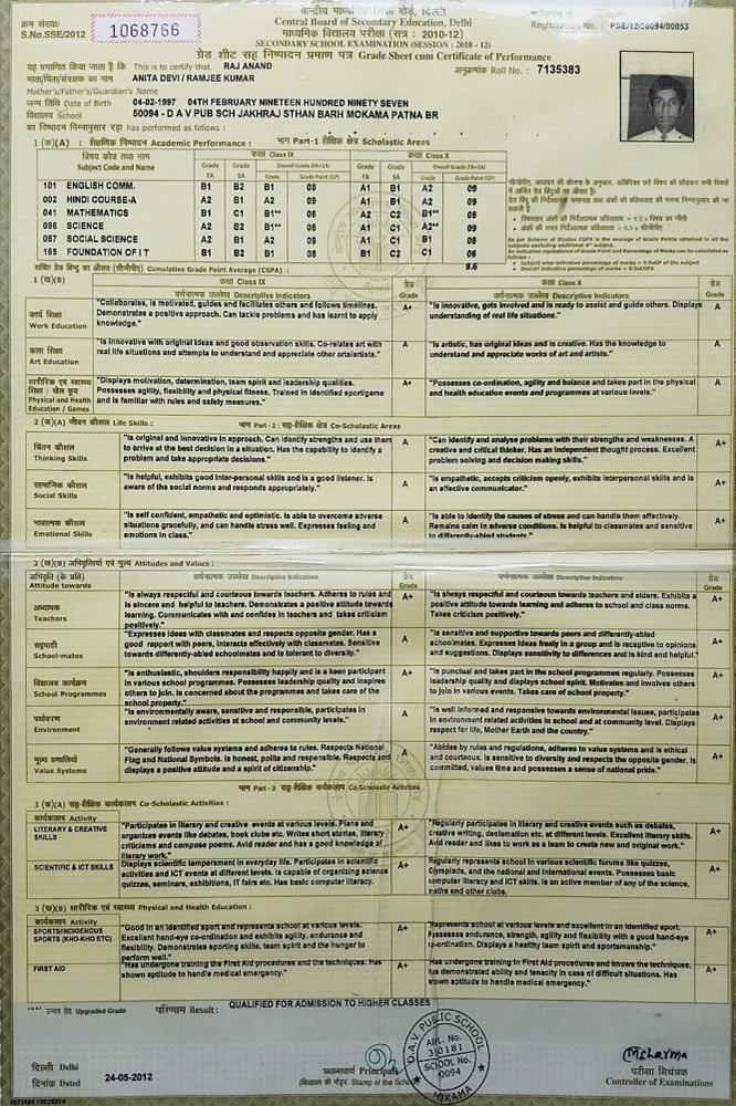 | Exam | Full Marks | Pass Marks | Marks Obtained |