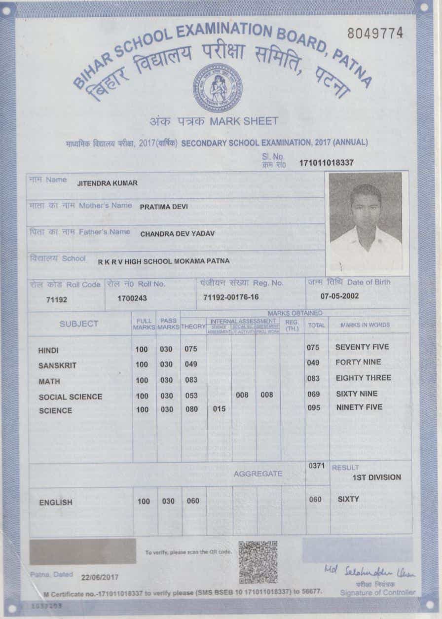 | Exam | Full Marks | Pass Marks | Marks Obtained |