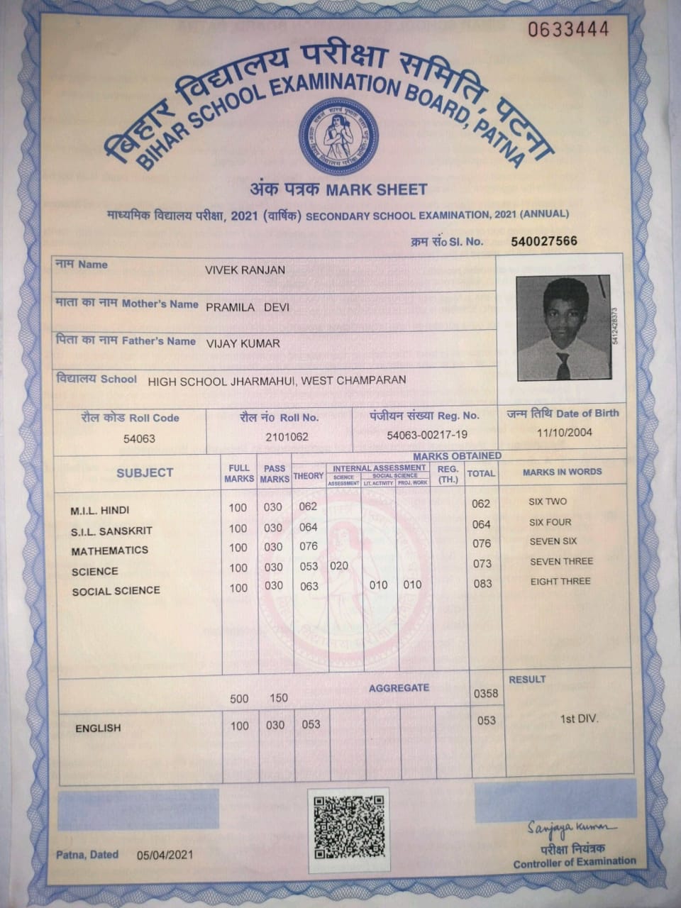 | Exam | Full Marks | Pass Marks | Marks Obtained |