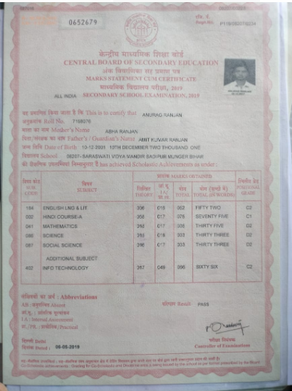 | Exam | Full Marks | Pass Marks | Marks Obtained |
