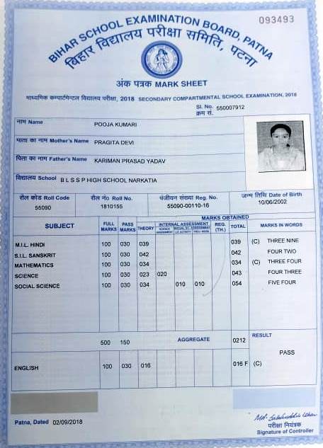 | Exam | Full Marks | Pass Marks | Marks Obtained |
