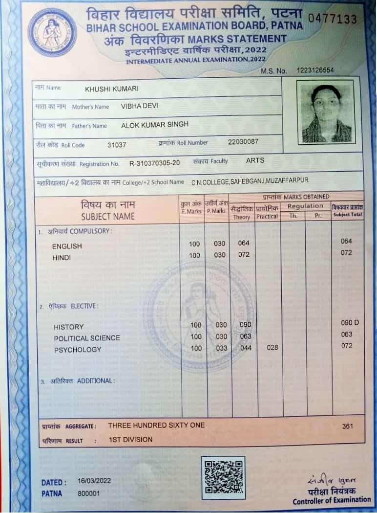 | Exam | Full Marks | Pass Marks | Marks Obtained |