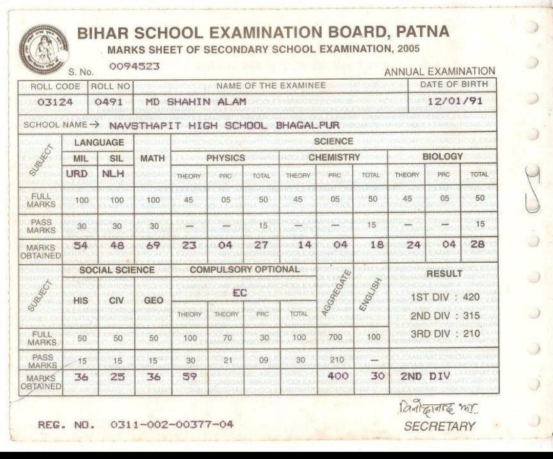 | Exam | Full Marks | Pass Marks | Marks Obtained |