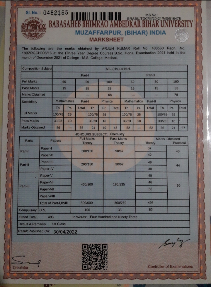 | Exam | Full Marks | Pass Marks | Marks Obtained |