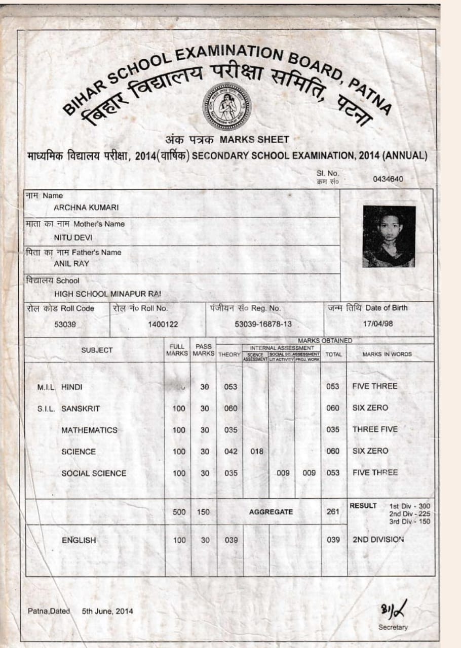 | Exam | Full Marks | Pass Marks | Marks Obtained |
