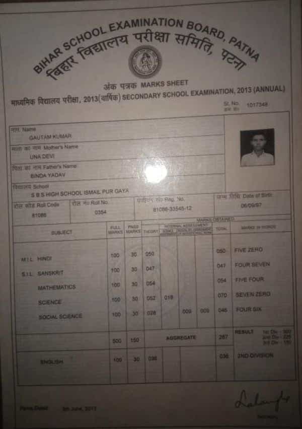 | Exam | Full Marks | Pass Marks | Marks Obtained |