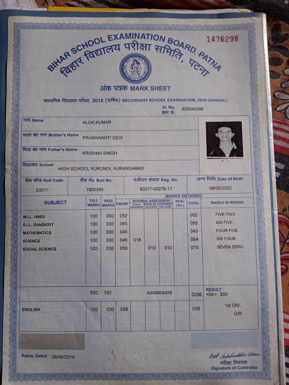 | Exam | Full Marks | Pass Marks | Marks Obtained |