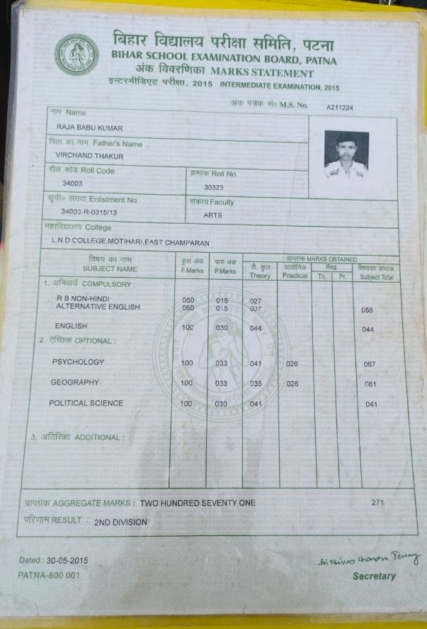 | Exam | Full Marks | Pass Marks | Marks Obtained |