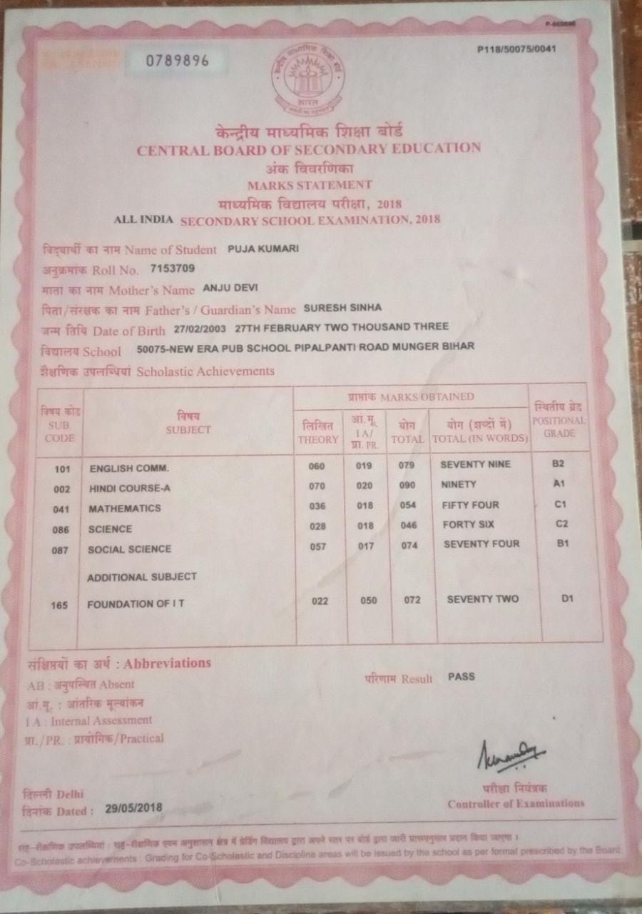 | Exam | Full Marks | Pass Marks | Marks Obtained |