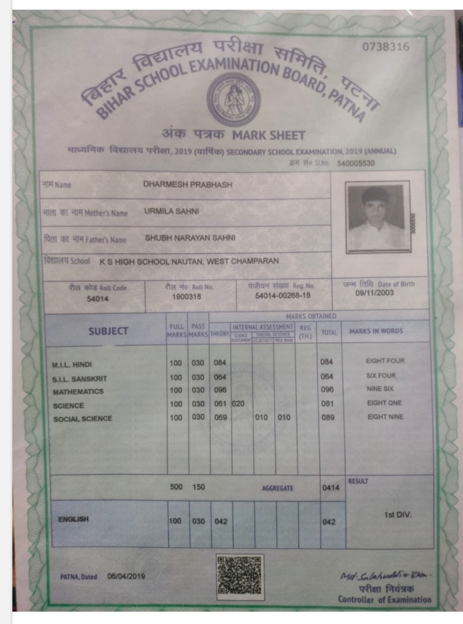 | Exam | Full Marks | Pass Marks | Marks Obtained |