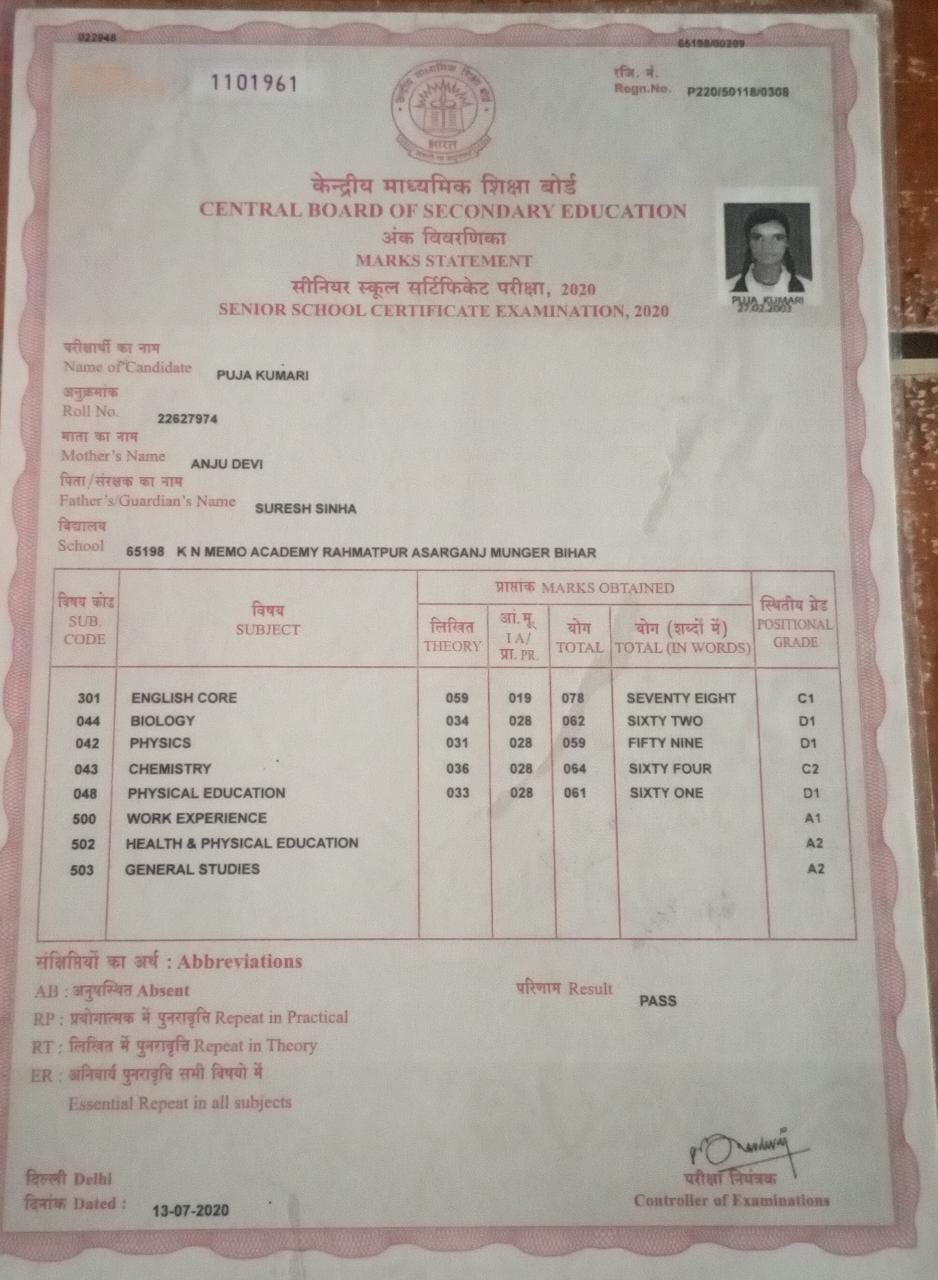 | Exam | Full Marks | Pass Marks | Marks Obtained |