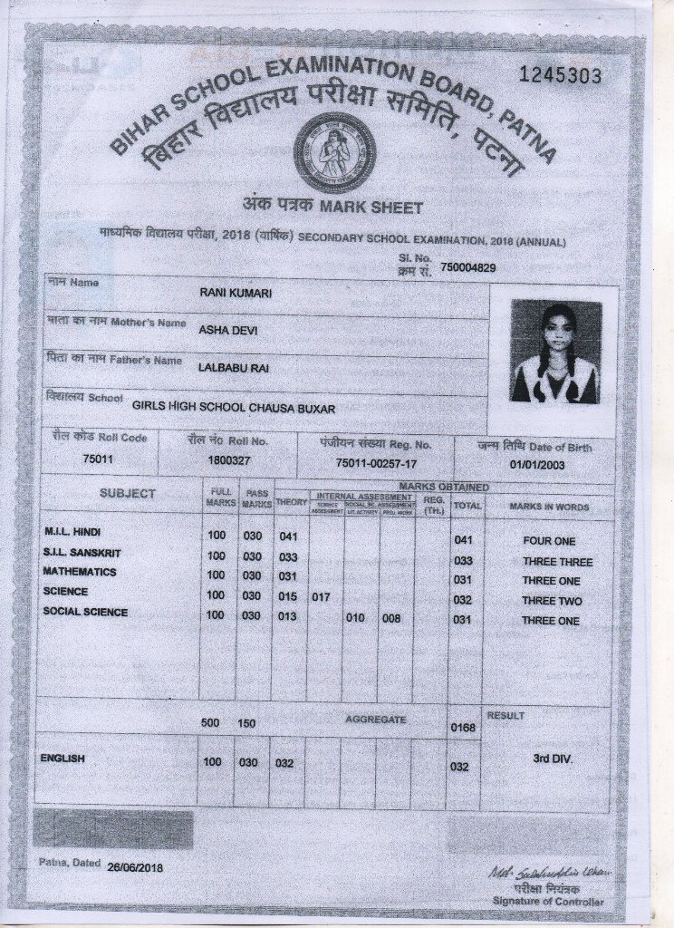 | Exam | Full Marks | Pass Marks | Marks Obtained |