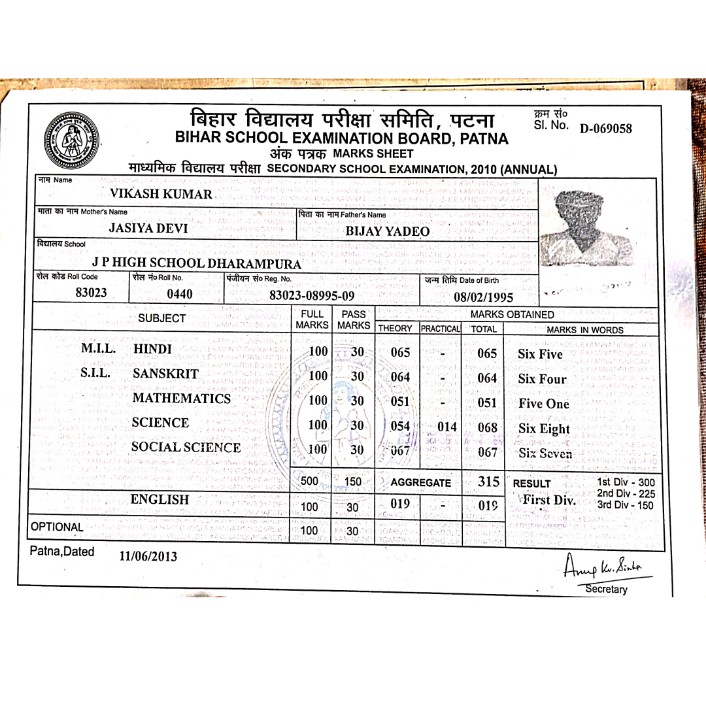 | Exam | Full Marks | Pass Marks | Marks Obtained |