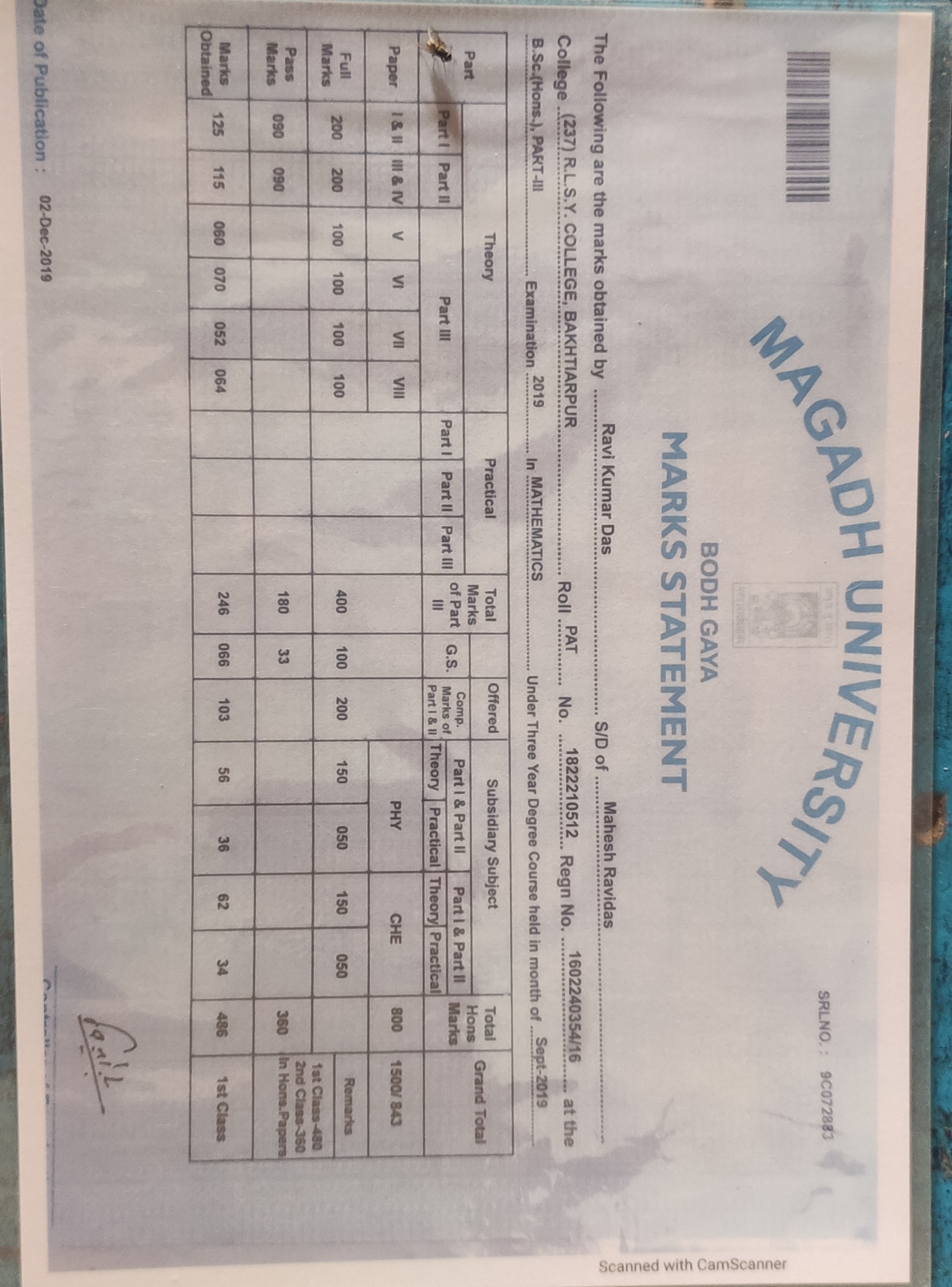 | Exam | Full Marks | Pass Marks | Marks Obtained |