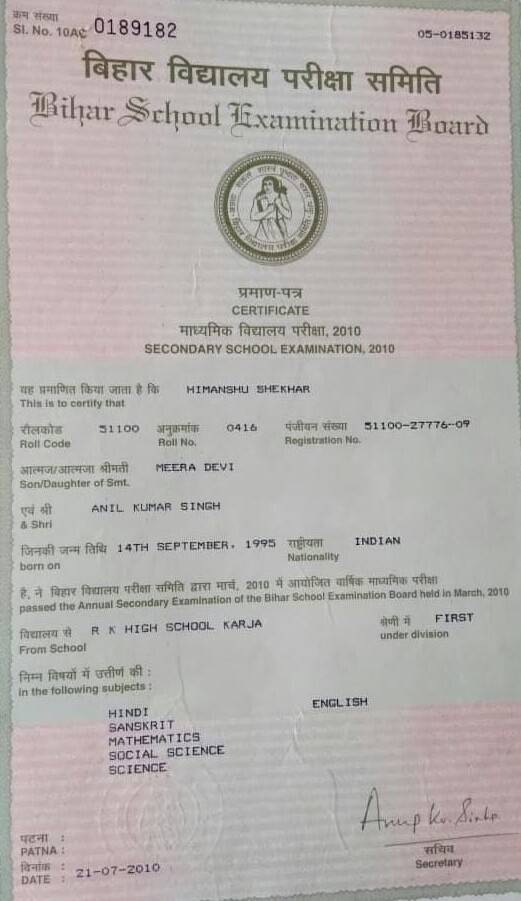 | Exam | Full Marks | Pass Marks | Marks Obtained |