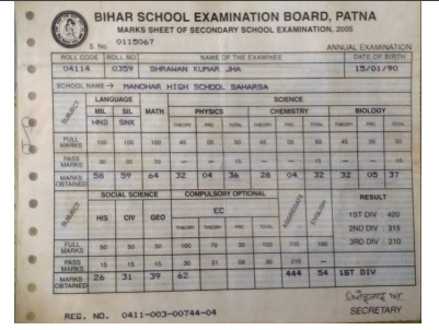 | Exam | Full Marks | Pass Marks | Marks Obtained |