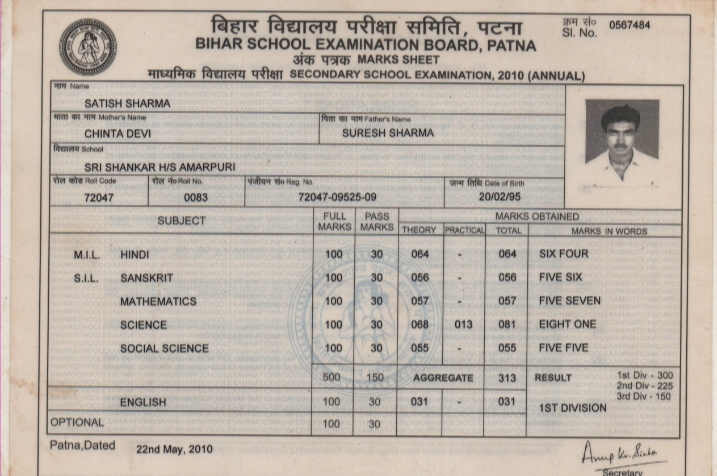 | Exam | Full Marks | Pass Marks | Marks Obtained |
