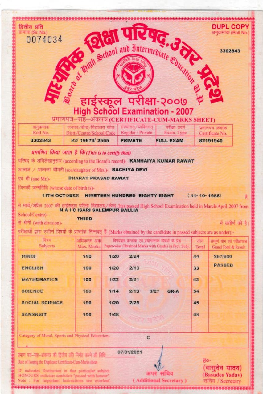 | Exam | Full Marks | Pass Marks | Marks Obtained |