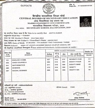 | Exam | Full Marks | Pass Marks | Marks Obtained |