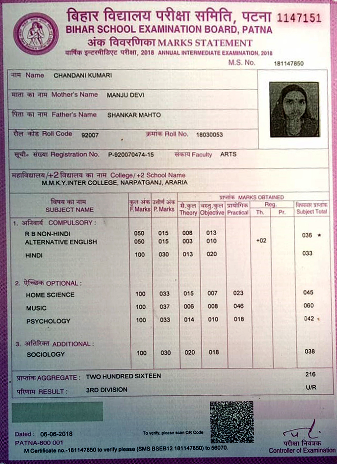 | Exam | Full Marks | Pass Marks | Marks Obtained |