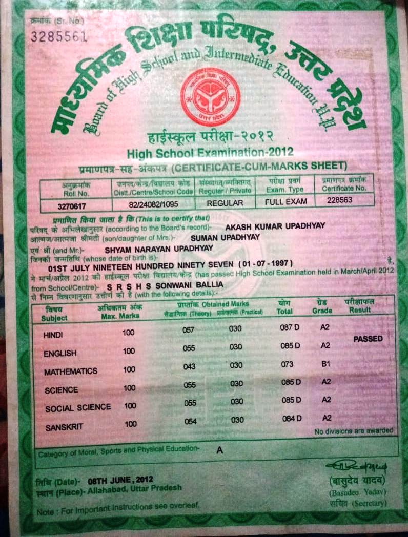 | Exam | Full Marks | Pass Marks | Marks Obtained |