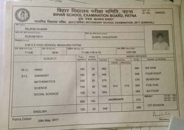 | Exam | Full Marks | Pass Marks | Marks Obtained |