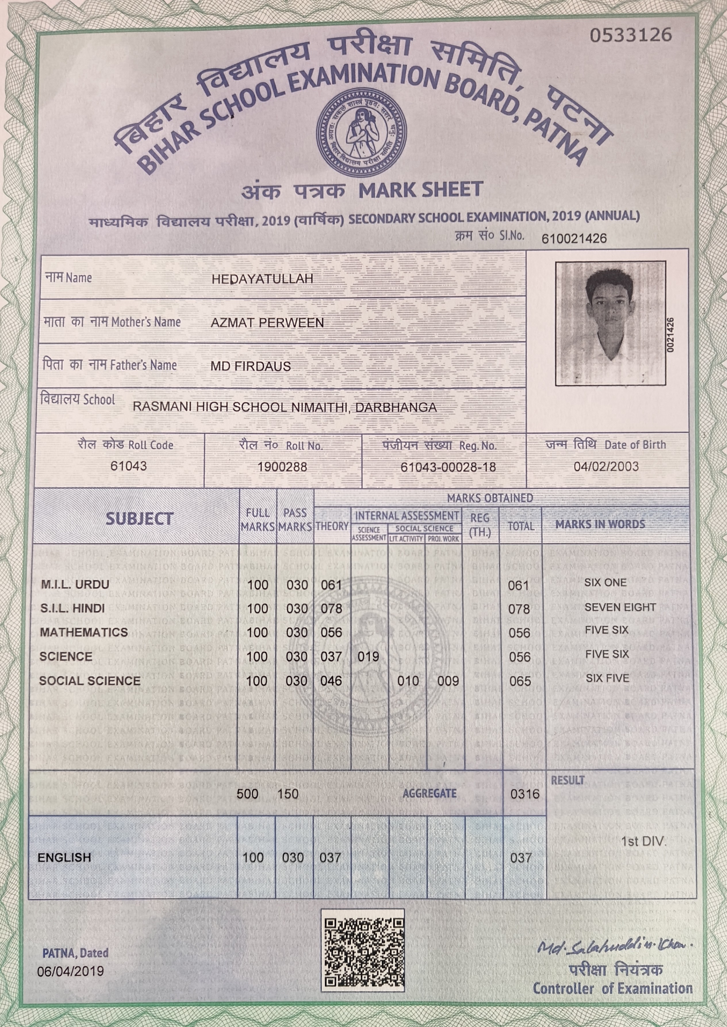 | Exam | Full Marks | Pass Marks | Marks Obtained |