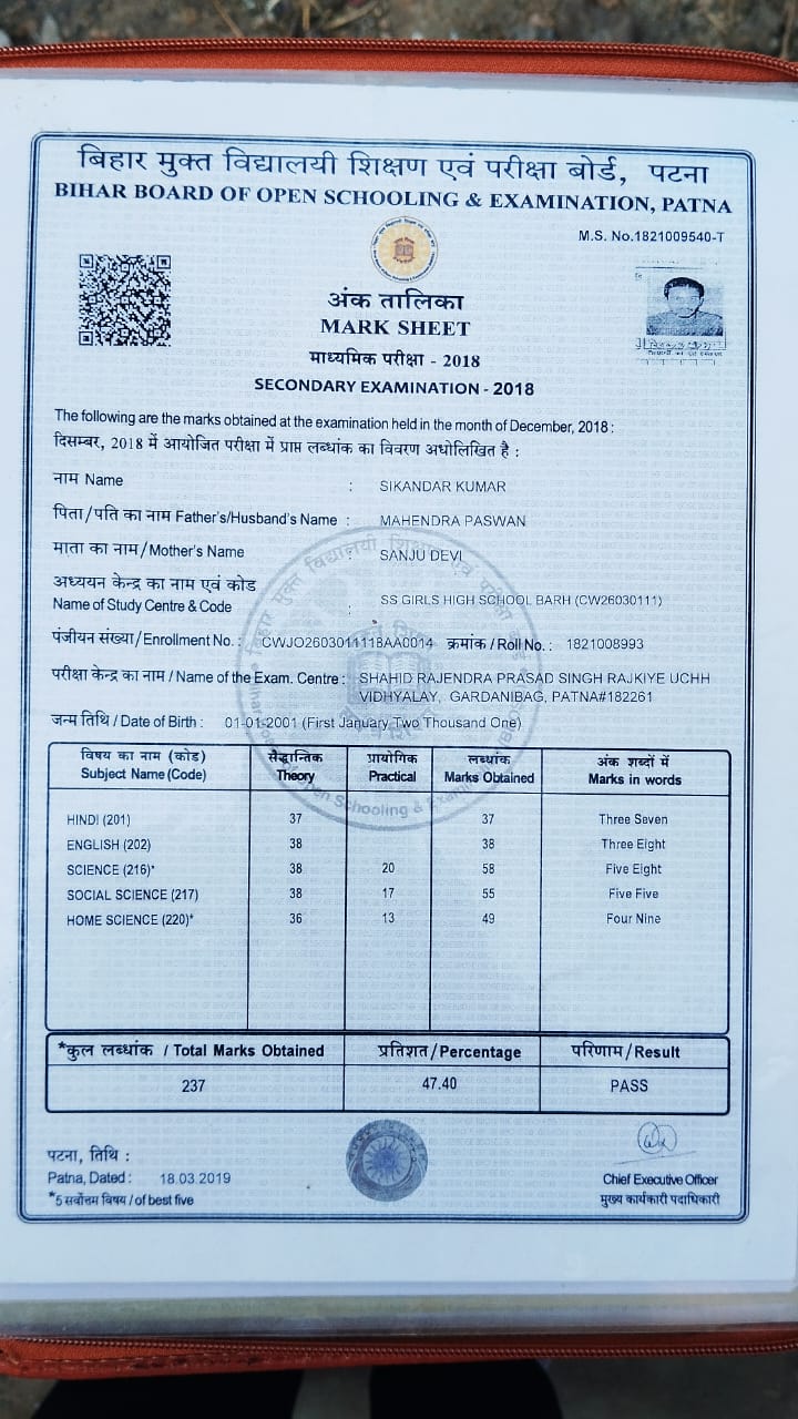 | Exam | Full Marks | Pass Marks | Marks Obtained |