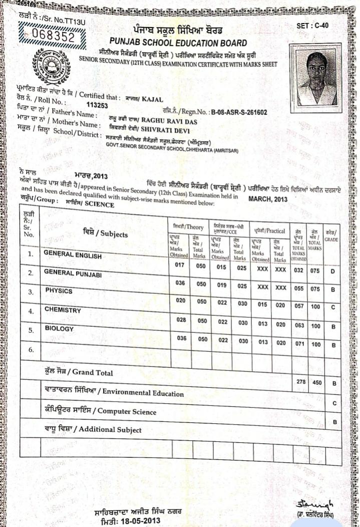 | Exam | Full Marks | Pass Marks | Marks Obtained |