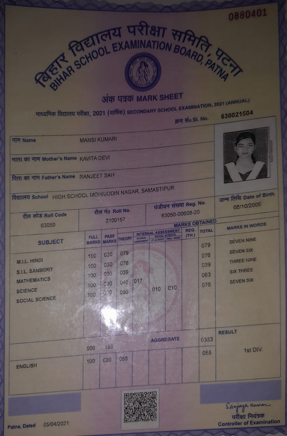 | Exam | Full Marks | Pass Marks | Marks Obtained |