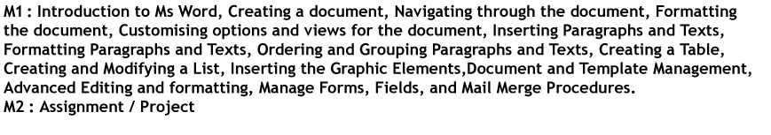Computer CoursesMSWMicrosoft Word1 MonthsMatric200.00ACTIVE MS WORD,